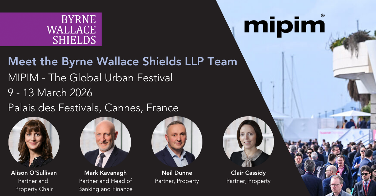 The Byrne Wallace Shields LLP Property and Banking & Finance teams are delighted to once again attend MIPIM, the world’s premier real estate event, taking place in Cannes from 9 –13 March 2026.