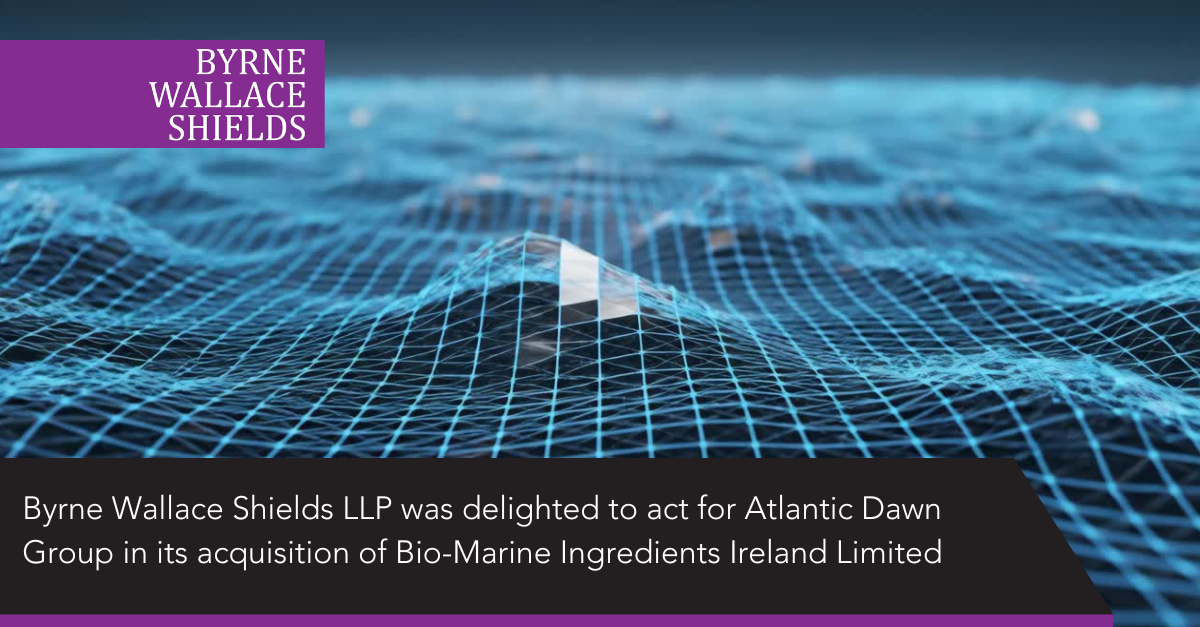 Byrne Wallace Shields LLP was delighted to act for Atlantic Dawn Group in its acquisition of Bio-Marine Ingredients Ireland Limited, a leading Irish based producer of specialty marine proteins, mineral and lipid powders, for supply to the human food ingredients ecosystem.