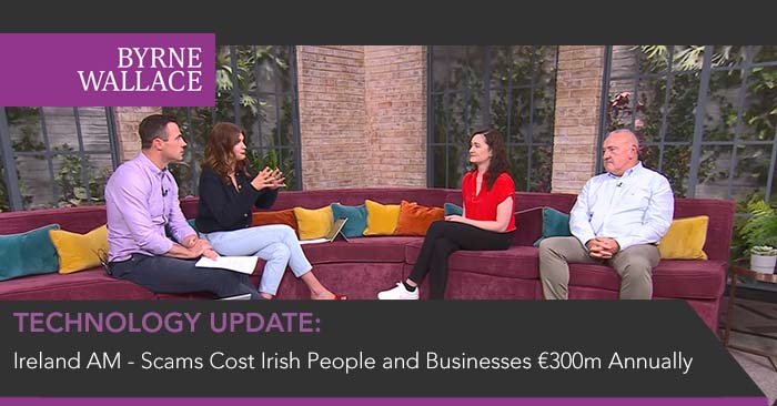 Byrne Wallace Shields LLP Partner and Head of Technology Victor Timon joined host of For Tech’s Sake Elaine Burke, and Ireland AM hosts Muireann O'Connell and Tommy Bowe to discuss the increase in online scams which are reportedly costing Irish people and businesses €300 million annually.